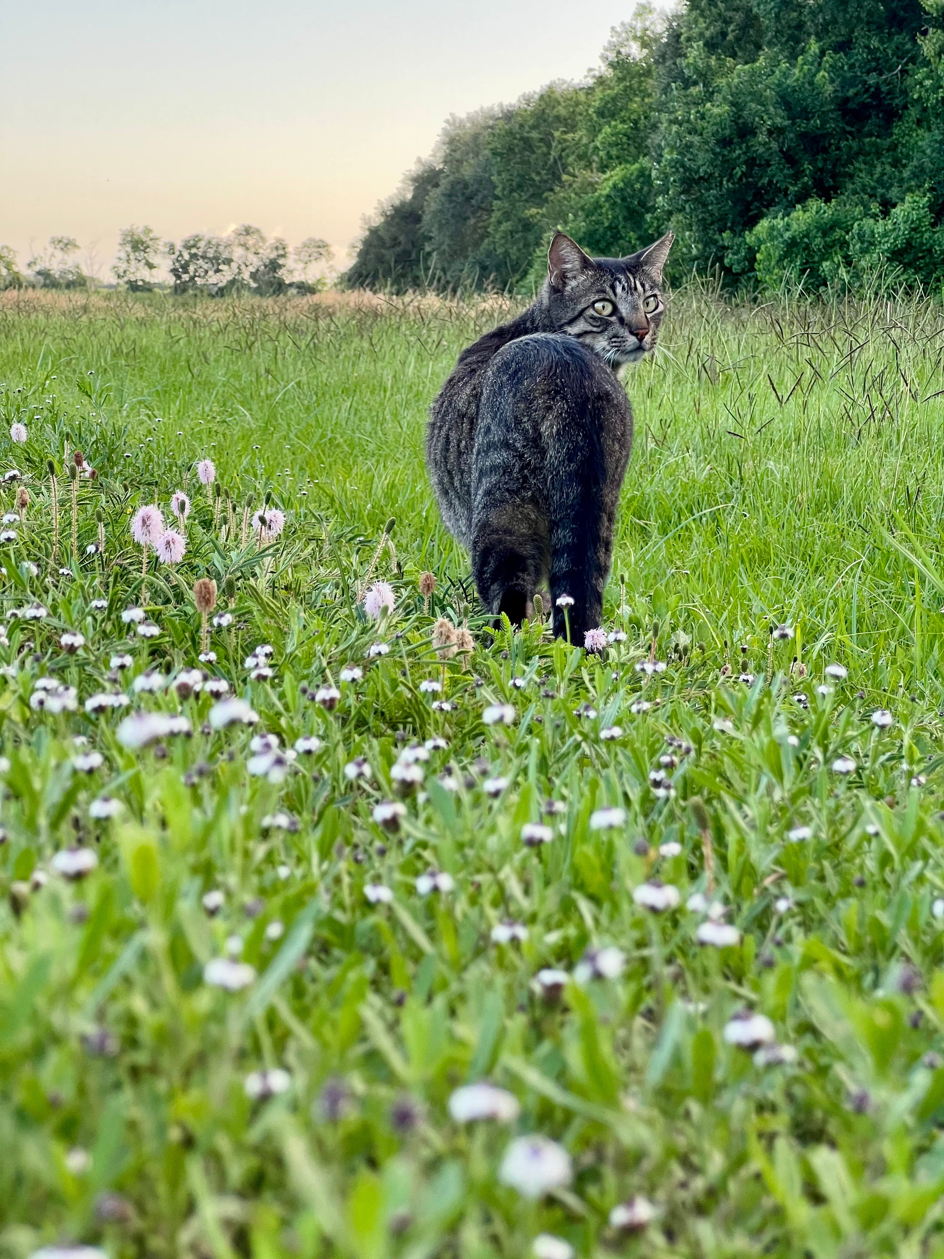 Para essa edição, busquei fotos de gatinhos na minha galeria. Escolhi essa do Miles — ele está no Texas, mas bem que poderia ser um condado no sul da Inglaterra. Se você espremer os olhos vai ver a Elizabeth e o Mr. Darcy lá no fundo, atrás da árvore.